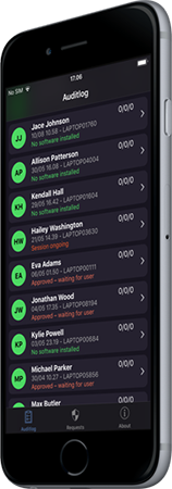 The user can start their elevated session if they are auto-approved or the request has been accepted in the portal workflow. Logging off is not required to gain elevation and at session start they are presented with a count-down timer (configure duration). Session details are uploaded to the portal once the user either stops the timer or the time runs out. Audit the session details in the portal (via webpage or mobile app), for example which software was installed or uninstalled and which applications were run UAC elevated (Windows only) during the session.